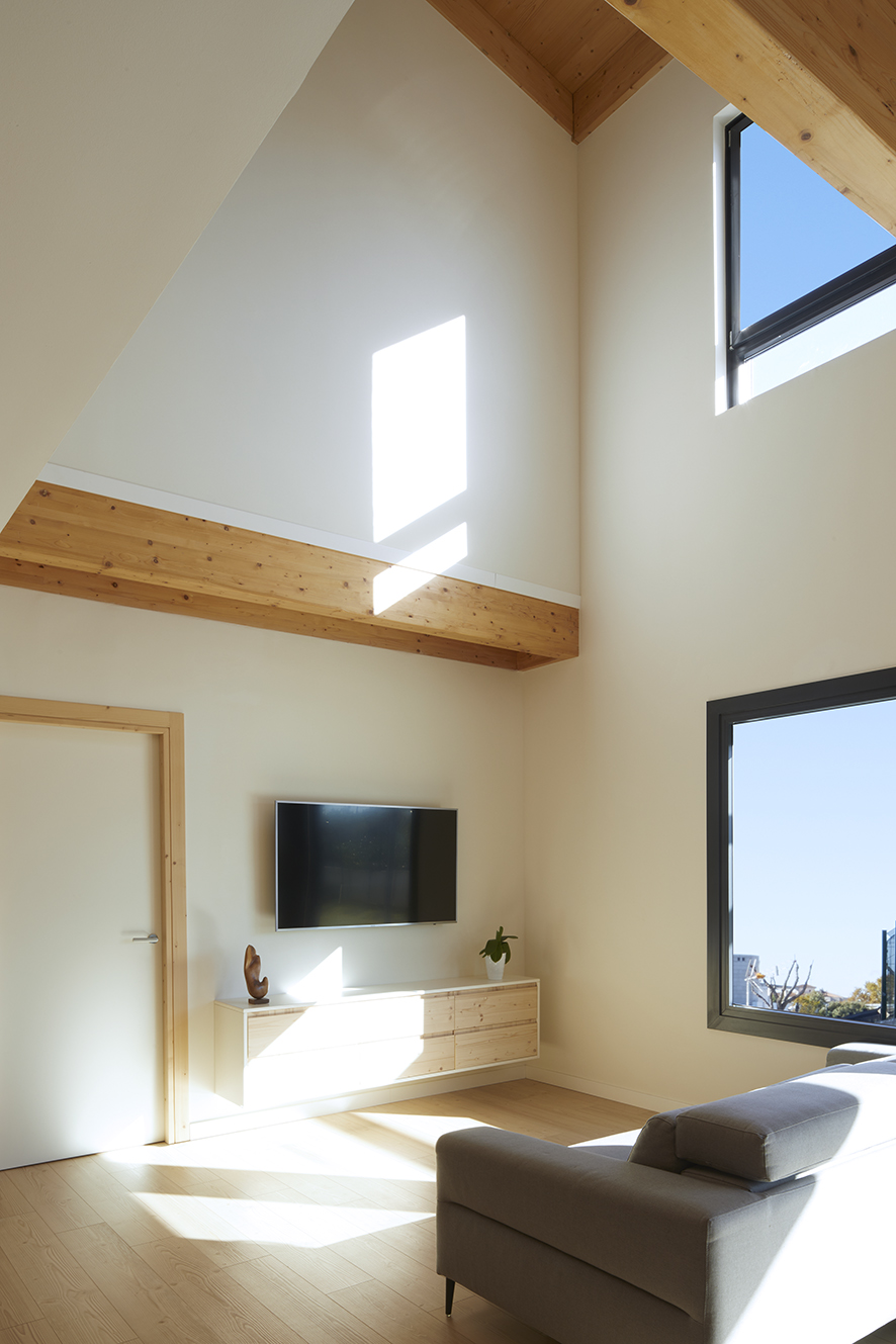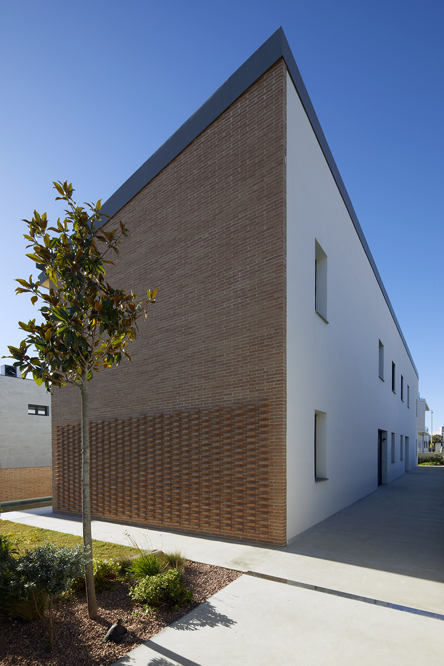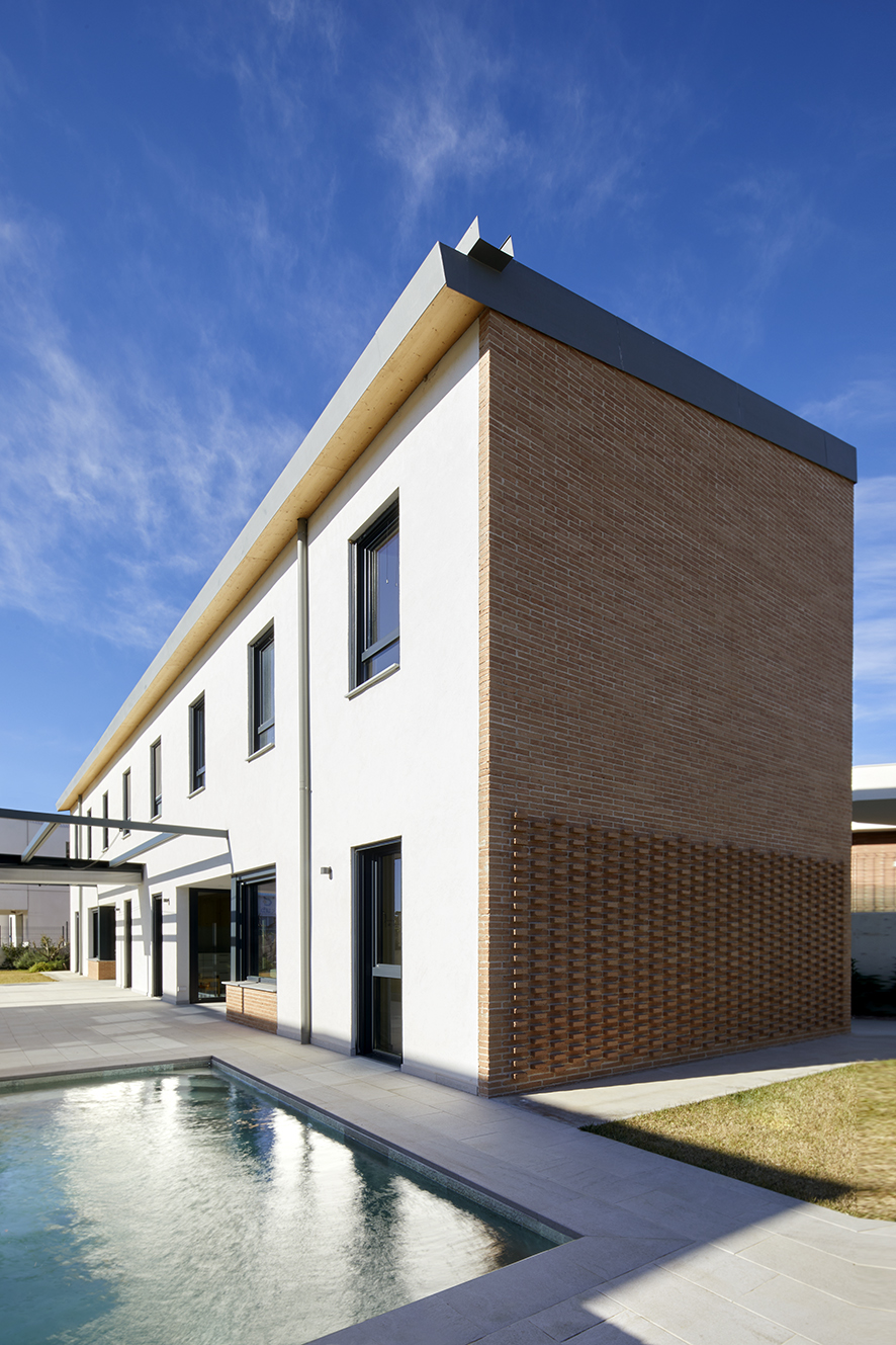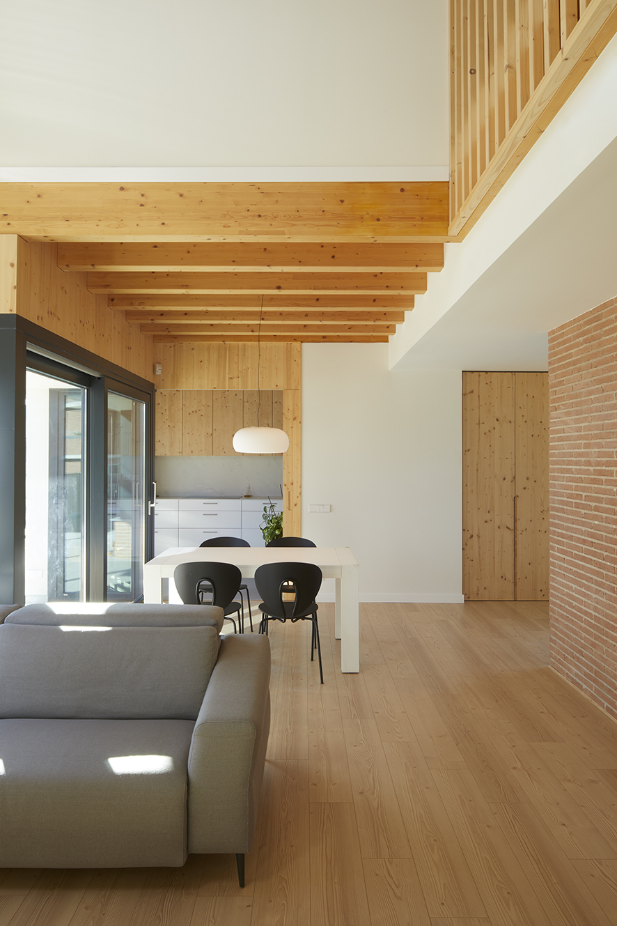 La casa está construida siguiendo criterios activos y pasivos de sostenibilidad, con la utilización de materiales naturales como la cerámica y la madera, la ejecución de una envolvente aislada sin puentes térmicos, o la cubierta ventilada.